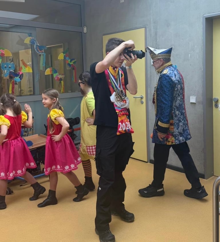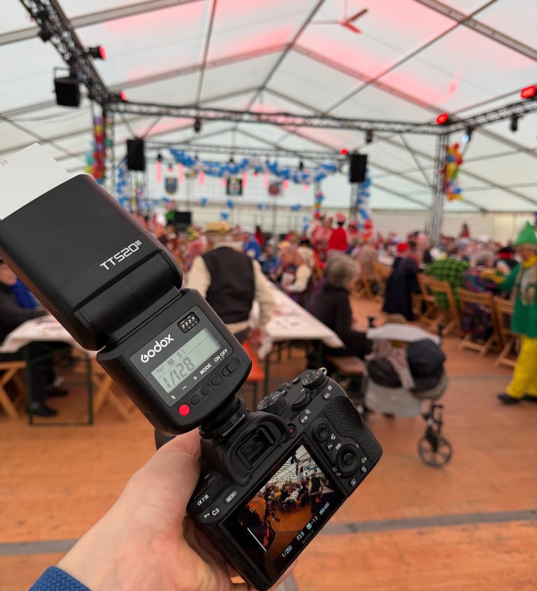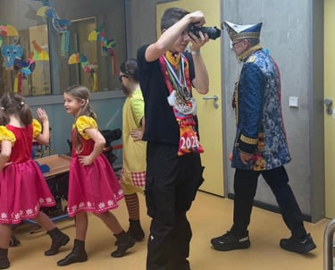 Die drei Fotos geben einen guten Eindruck in meine Arbeit im Karneval. Mit meinem Equipment-Koffer ging's von Auftritt zu Auftritt, darin befand sich von Pflastern und Schmerztabletten über Speicherkarten und Snacks alles was man braucht um im Karneval mit Karneval überleben zu können. An der Location angekommen, wird direkt die Kamera gestartet und dann gehts ans Fotos machen.